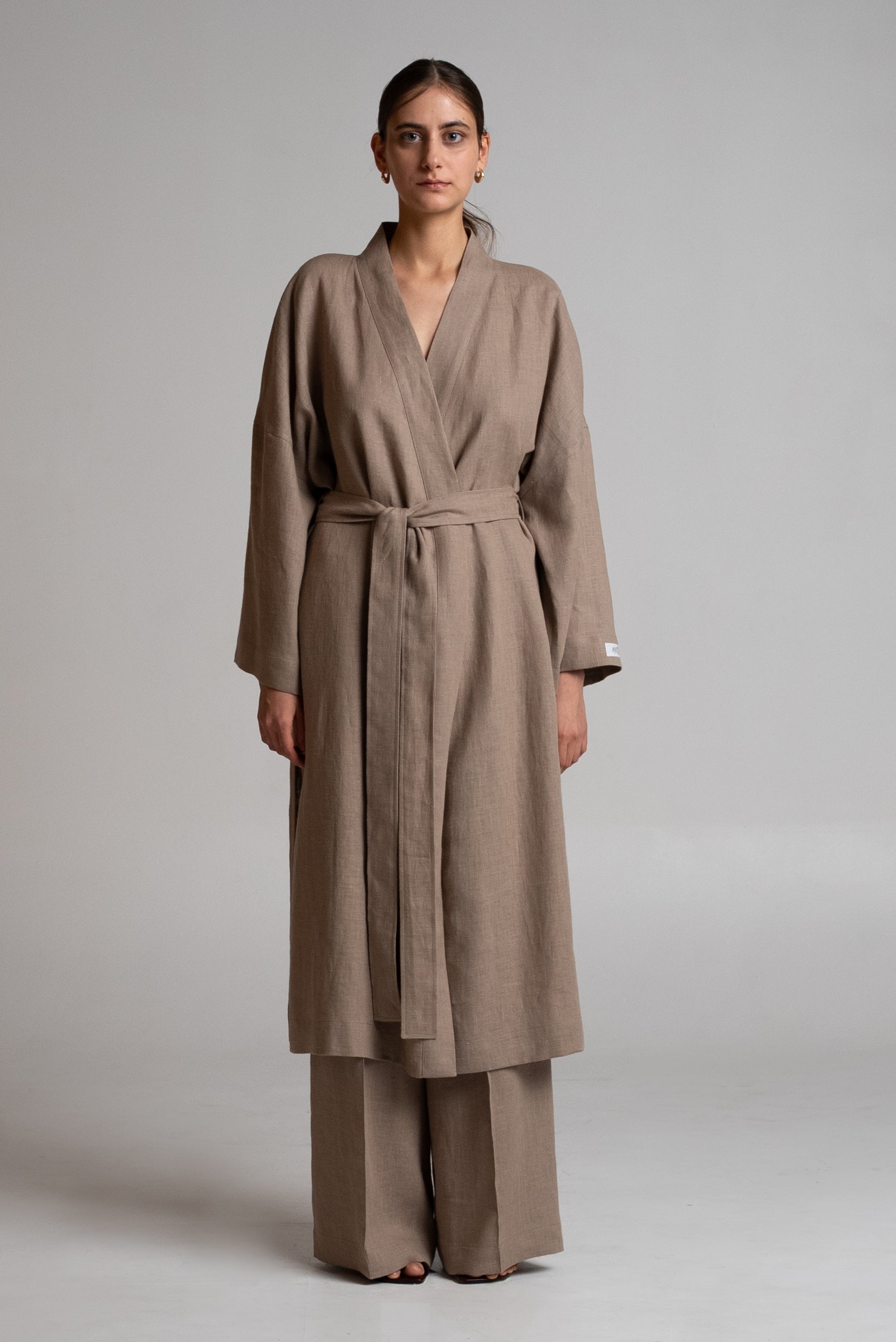 Made from European linen, handcrafted in the Baltic States. Model is 175 cm and is wearing size XS–L