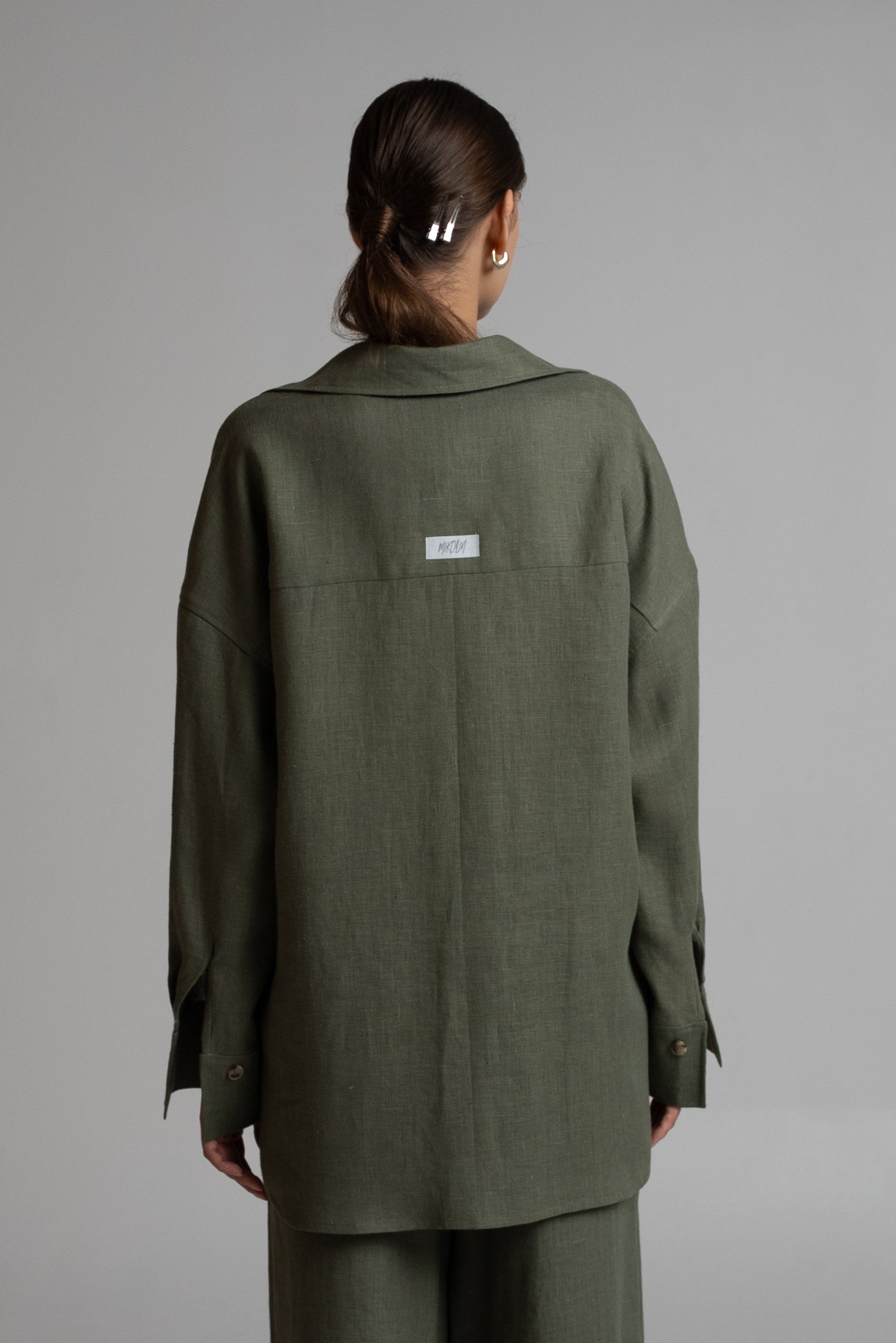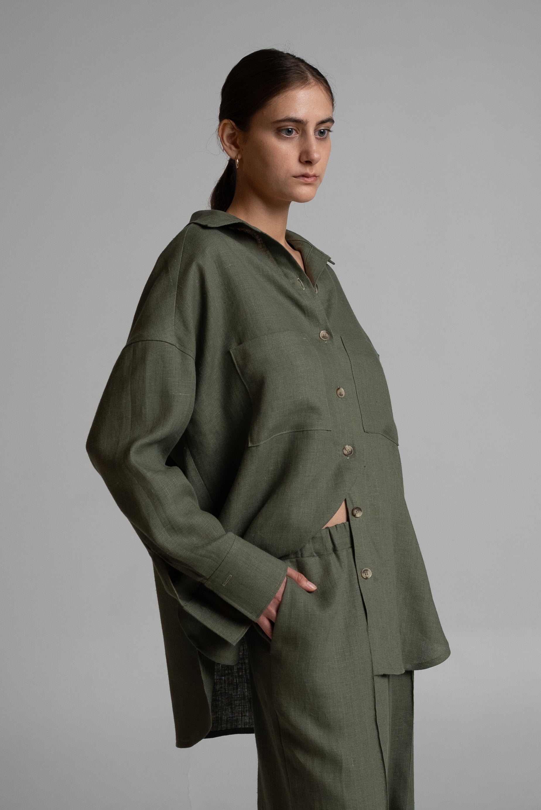 Made from European linen, handcrafted in the Baltic States. Model is 175 cm and is wearing size XS–L