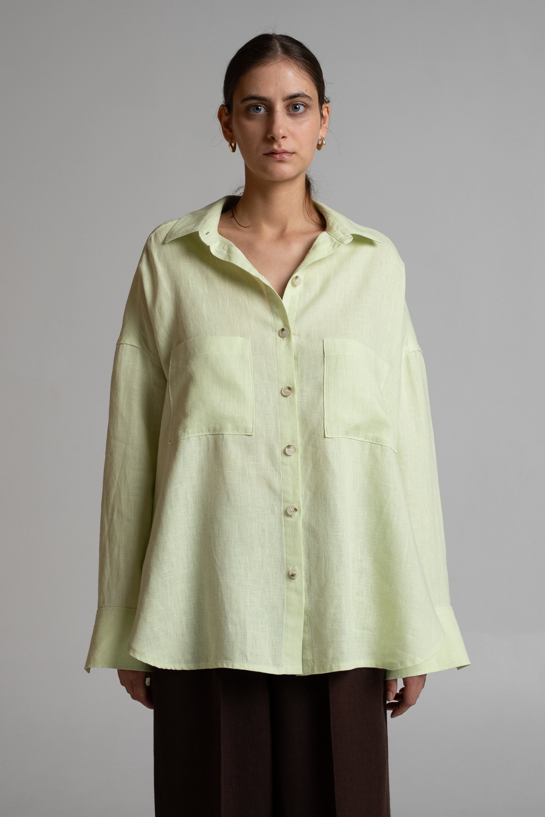 Made from European linen, handcrafted in the Baltic States. Model is 175 cm and is wearing size XS–L