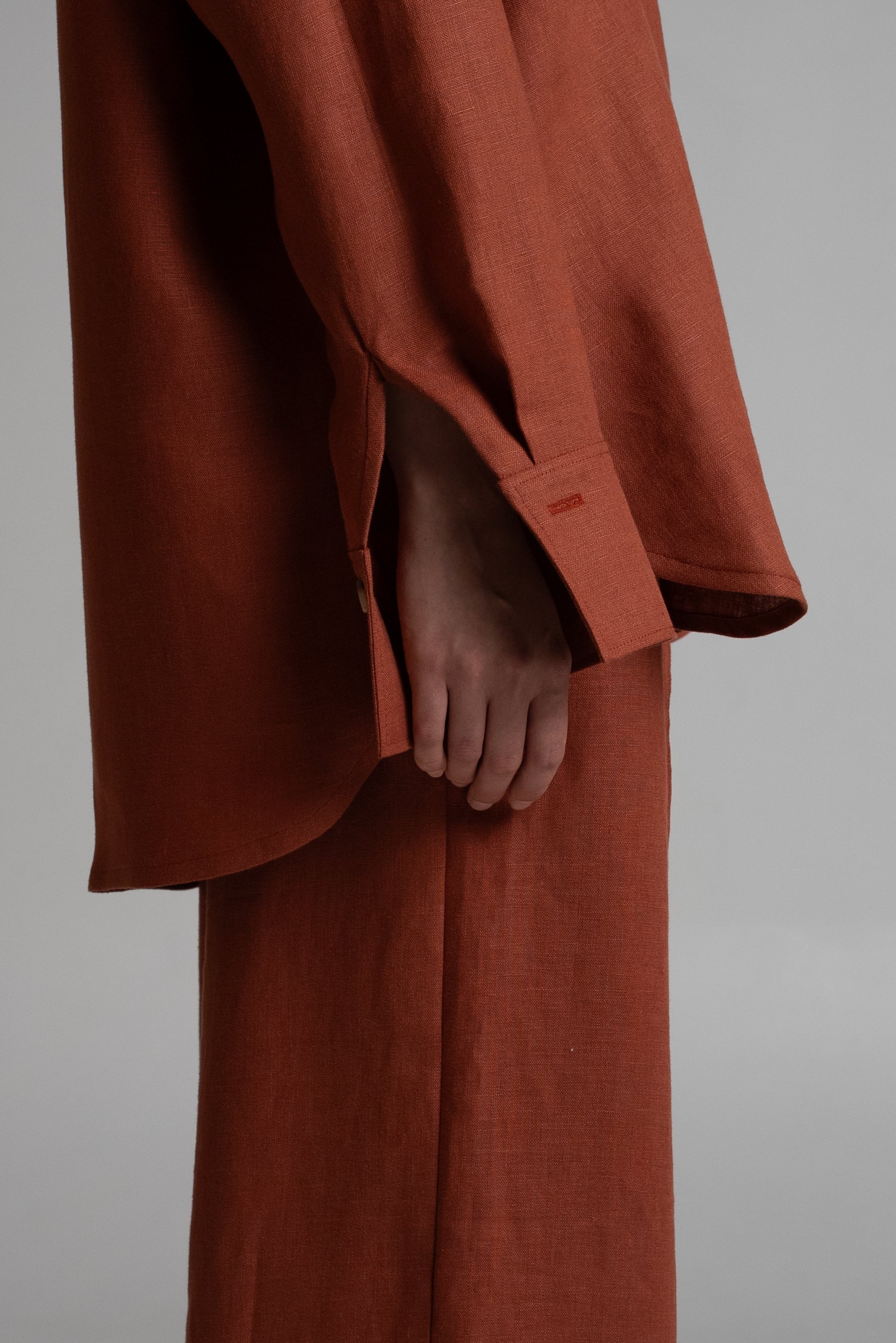Made from European linen, handcrafted in the Baltic States. Model is 175 cm and is wearing size XS–L