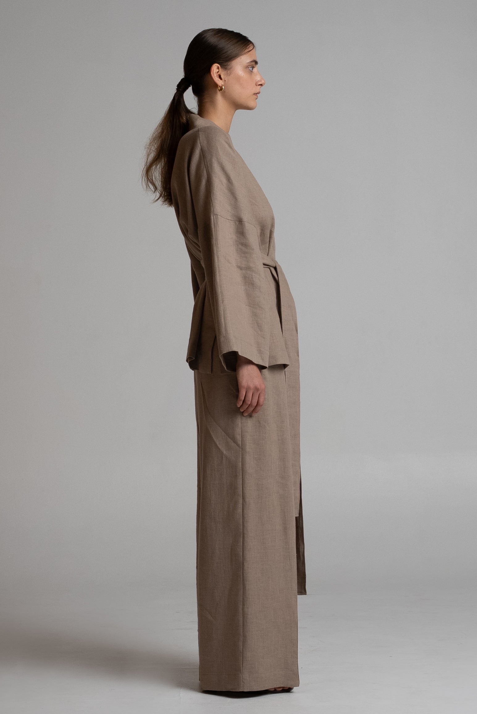 Made from European linen, handcrafted in the Baltic States. Model is 175 cm and is wearing size XS–L