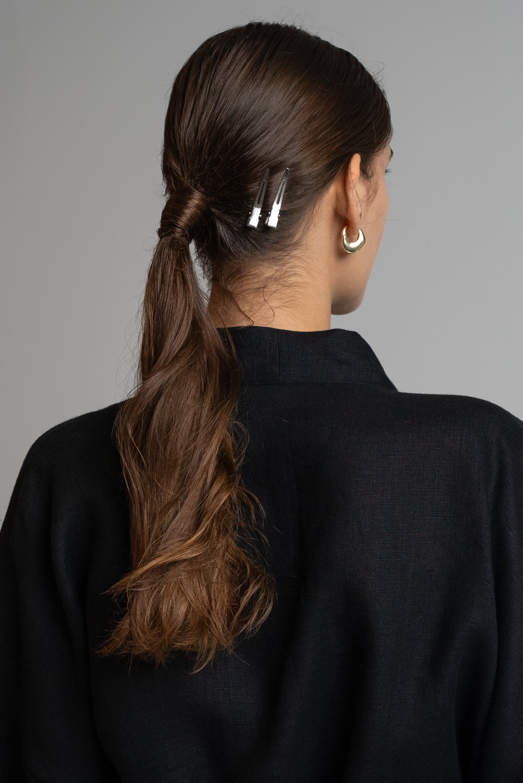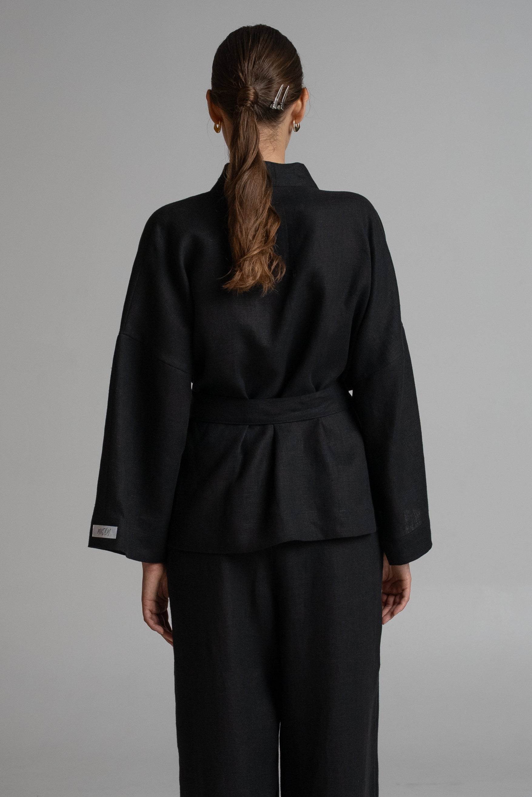 Made from European linen, handcrafted in the Baltic States. Model is 175 cm and is wearing size XS–L
