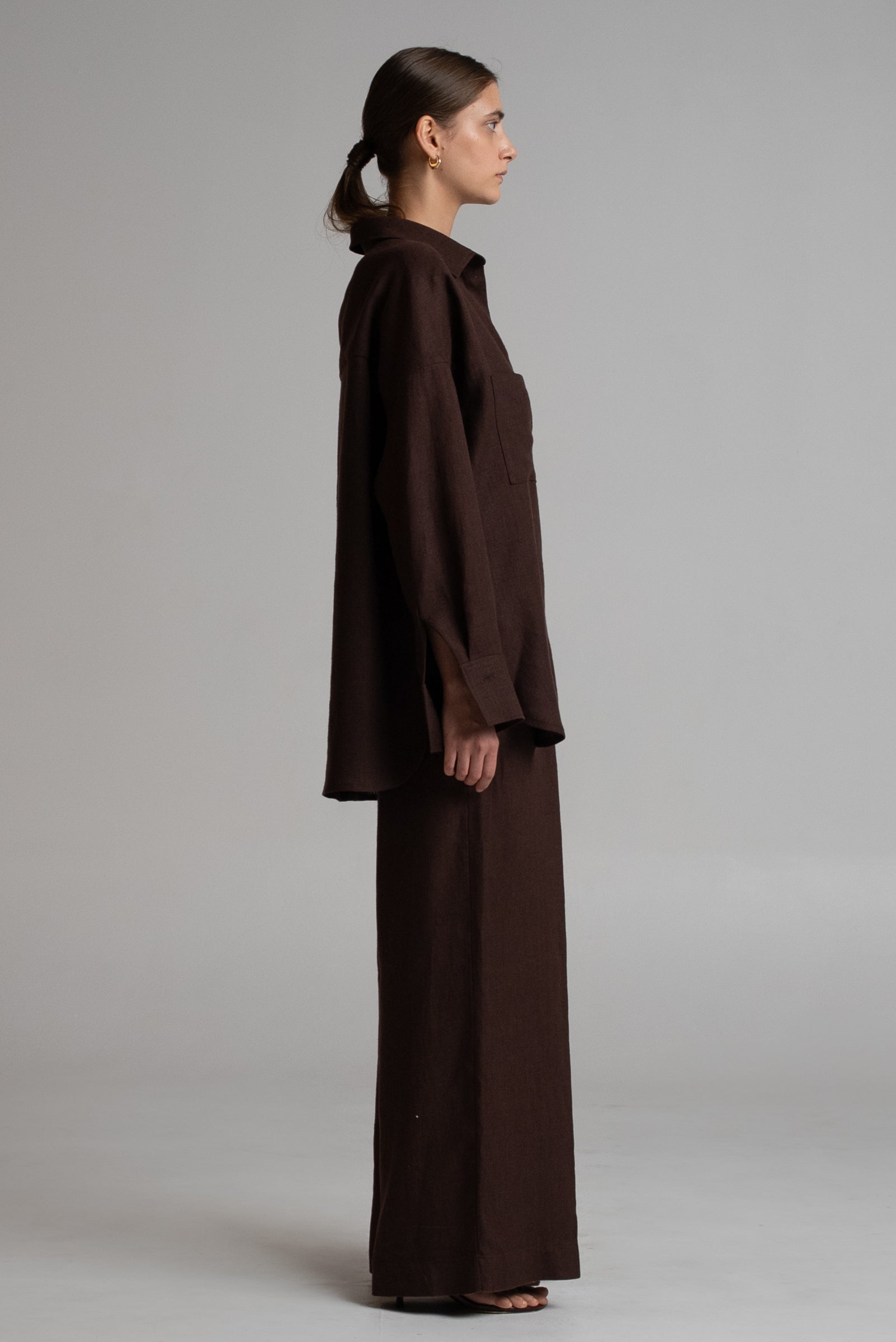 Made from European linen, handcrafted in the Baltic States. Model is 175 cm and is wearing size XS–L.