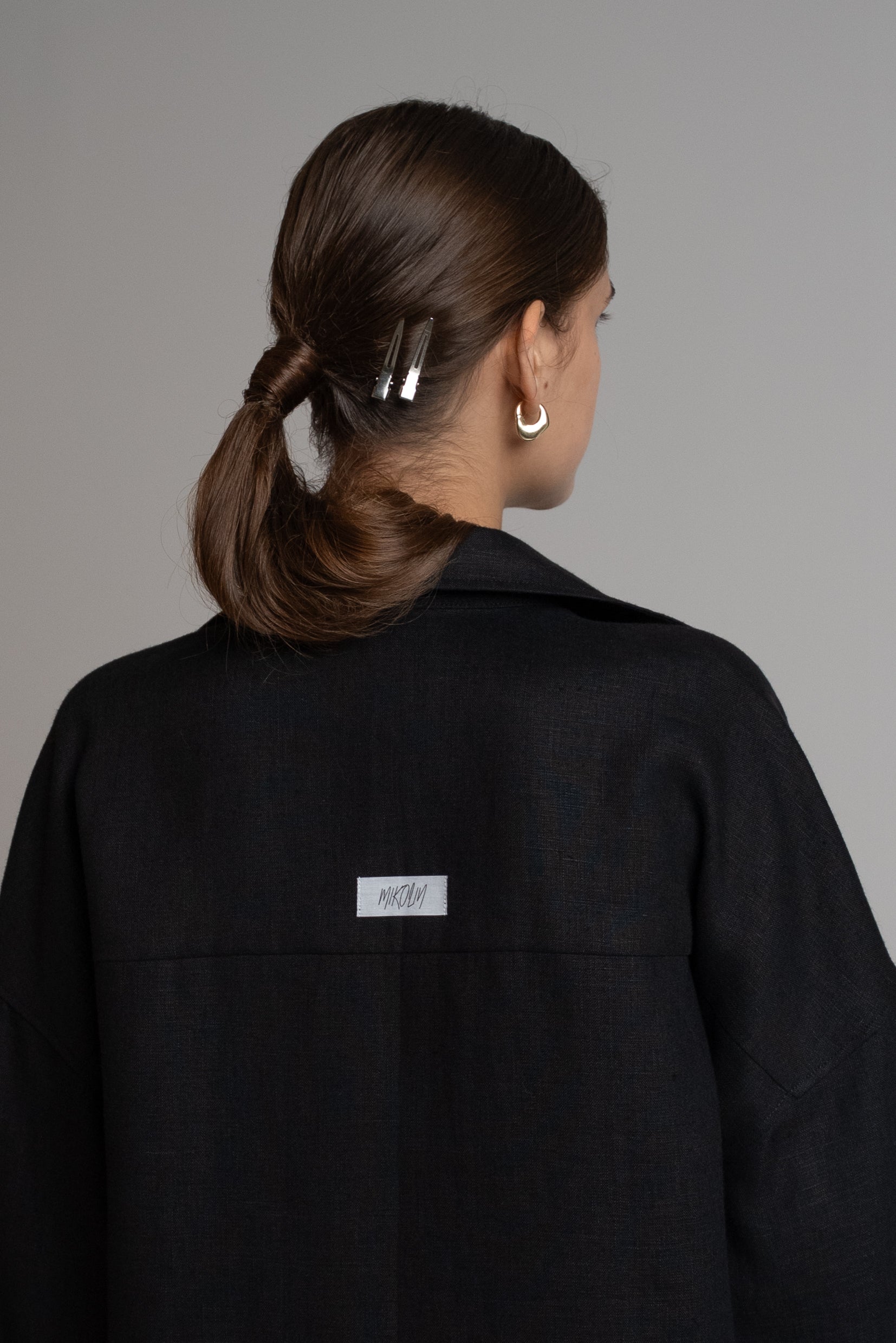 Made from European linen, handcrafted in the Baltic States. Model is 175 cm and is wearing size XS–L
